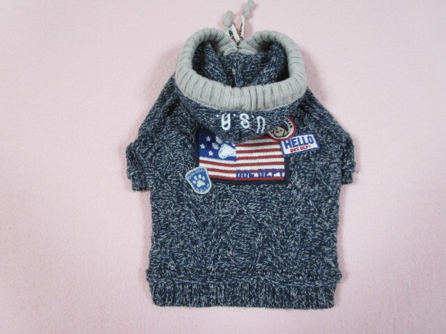 DOG DEPT ドッグデプト Sサイズ 胴回り41㎝ USA ニットパーカー ネイビー系 中古