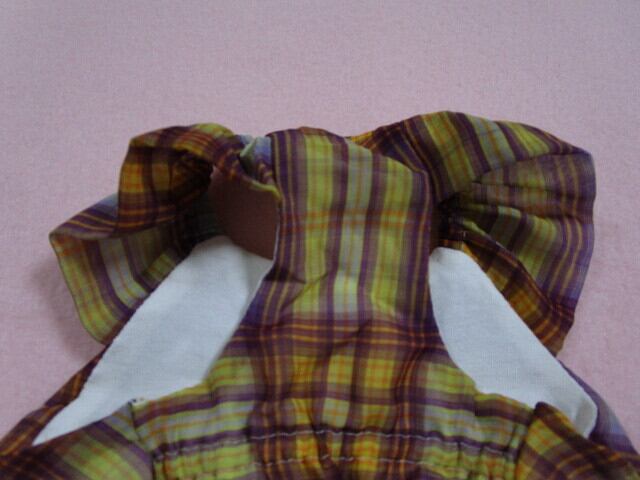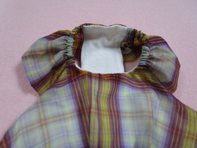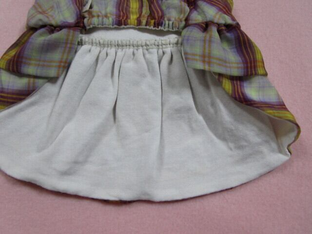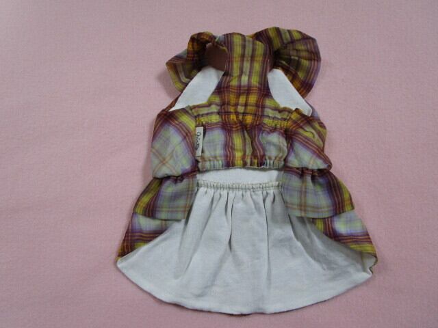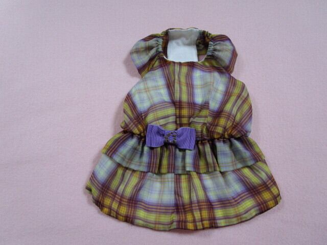 Mimtto ミムット 1号 胴回り31㎝ Chiffon Plaid Dress パープル系チェック柄 リボン付き 中古