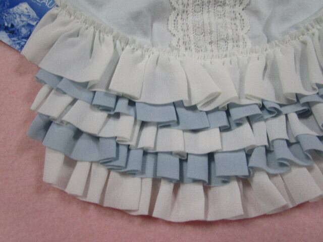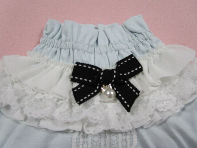 ■首元は伸縮可能、スカート部分にシフォンフリルををたっぷり寄せた魅力的な一枚です。