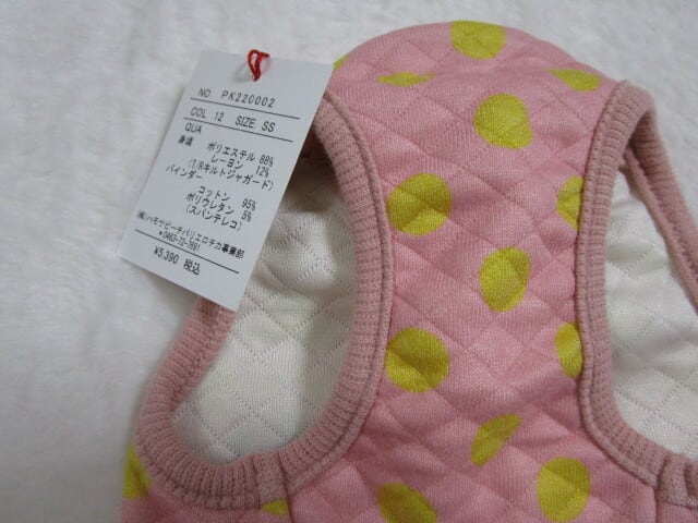 SSサイズ:実寸(約)・首回り18 胴回り29 総着丈19.5(cm)