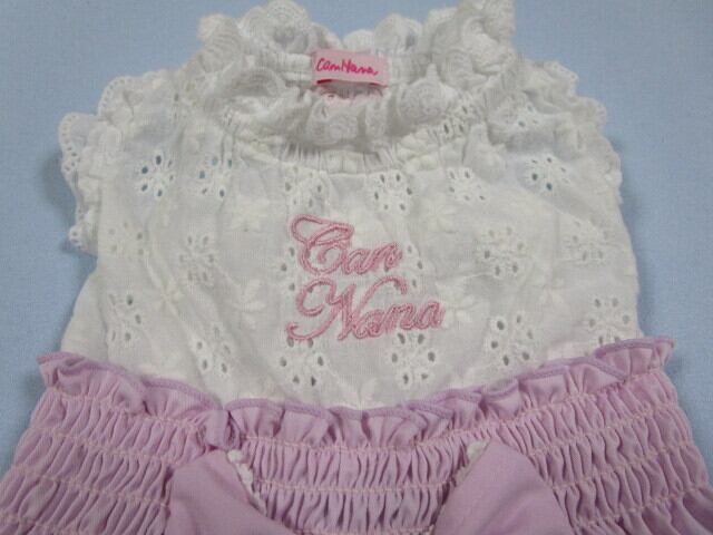 Can nana きゃんナナ S+Mサイズ 胴回り33cm コットンレース切替ワンピース ピンクパープル 中古 定価7920円