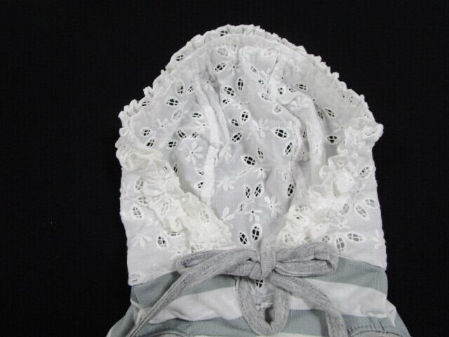 手書き風イラスト+ボーダー柄にコットンレースのフードを組み合わせた