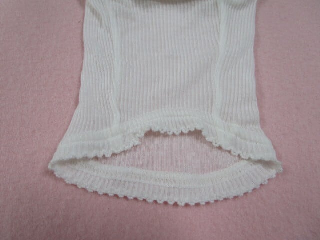 襟先や袖口・裾周りには同色のピコットししを施して、