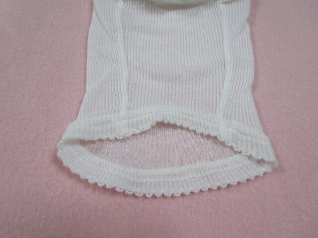 襟先や袖口・裾周りには同色のピコットししを施して、