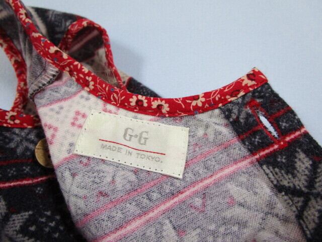 Atelier G.G アトリエジジ 19ハーフsize エプロンワンピース ネル・スノー柄 ネイビー 中古