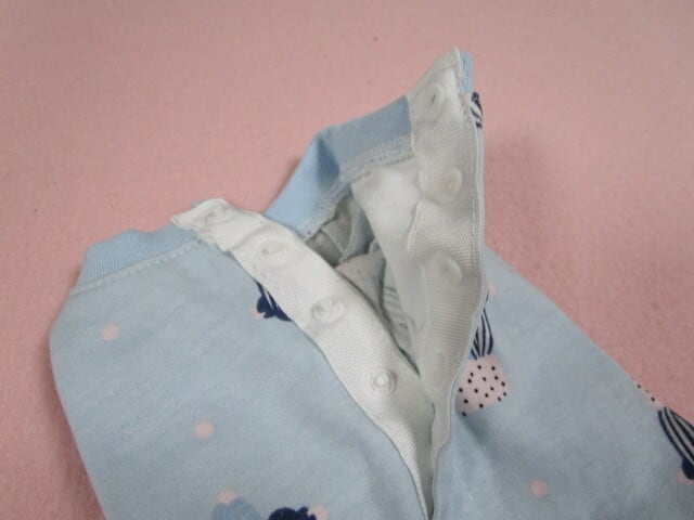 男の子用におなか部分にカットできるよう、丸くロックミシンがかけてあります。