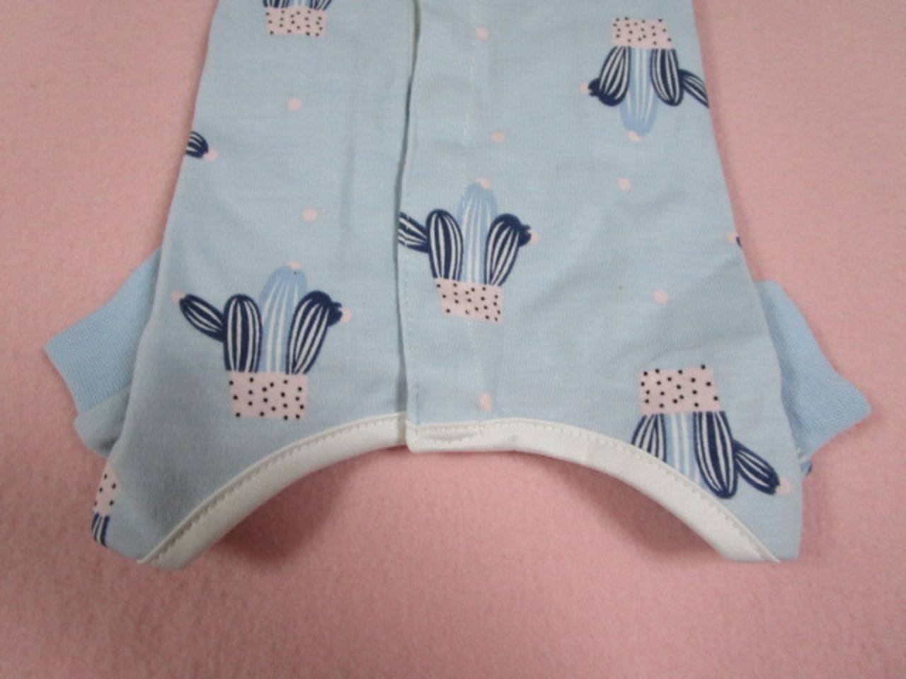 ペットウェア Sサイズ 胴回り33㎝ サボテン柄 背開き 術後服 ロンパース サックスブルー 未使用品