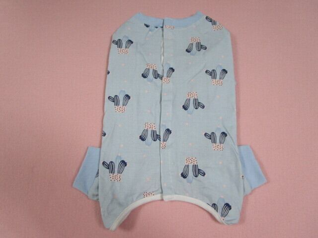 ペットウェア XLサイズ 胴回り51㎝ サボテン柄 背開き 術後服 ロンパース サックスブルー 未使用品