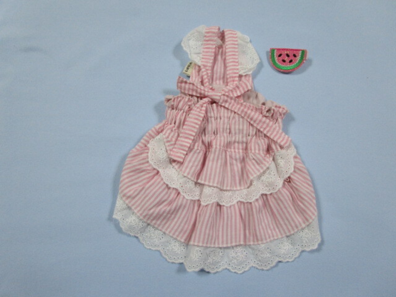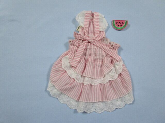 ene☆ 0号 胴回り26㎝~ゴム スイカのヘアピン付き フリル ストライプワンピース ピンク 中古 | ドッグウエア・ドッググッズ・ペットカート 買取 販売 リサイクルショップ 「earlyassam/アーリーアッサム」