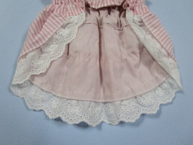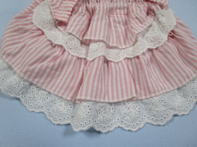 ene☆ 0号 胴回り26㎝~ゴム スイカのヘアピン付き フリル ストライプワンピース ピンク 中古