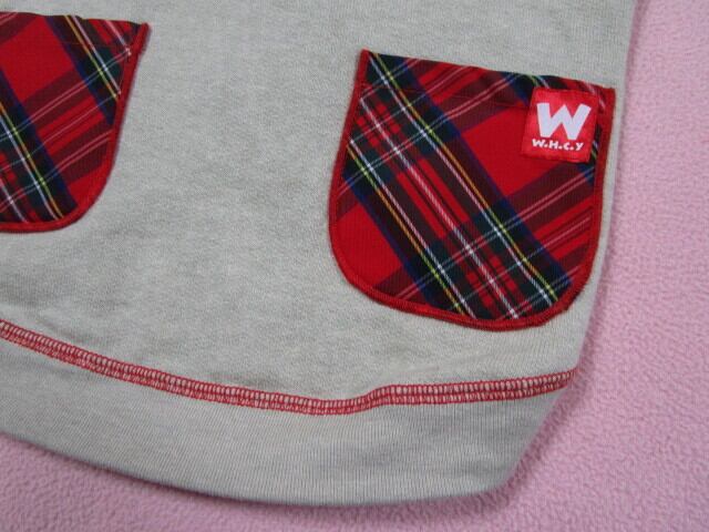 WHCY ウォームハートカンパニー Sサイズ 胴回り55㎝ 襟付きスエットベスト レッドチェック・ベージュ 美品中古