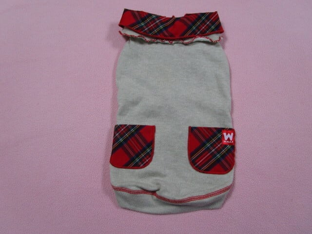 WHCY ウォームハートカンパニー SS-Mサイズ 胴回り44㎝ 襟付きスエットベスト レッドチェック・ベージュ 美品中古 | ドッグウエア・ドッググッズ・ペットカート 買取 販売 リサイクルショップ 「earlyassam/アーリーアッサム」