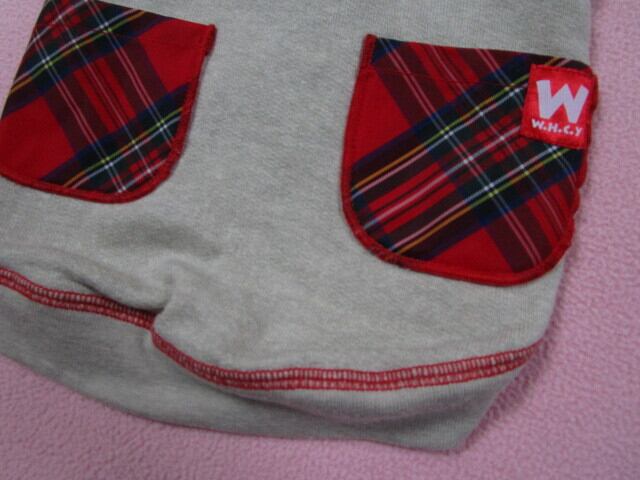 WHCY ウォームハートカンパニー SS-Mサイズ 胴回り44㎝ 襟付きスエットベスト レッドチェック・ベージュ 美品中古