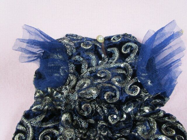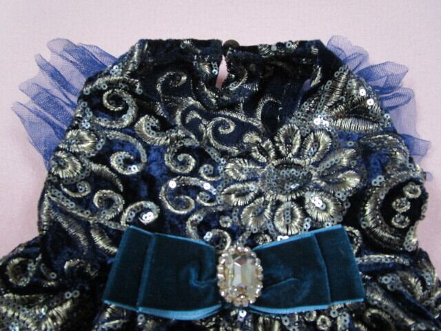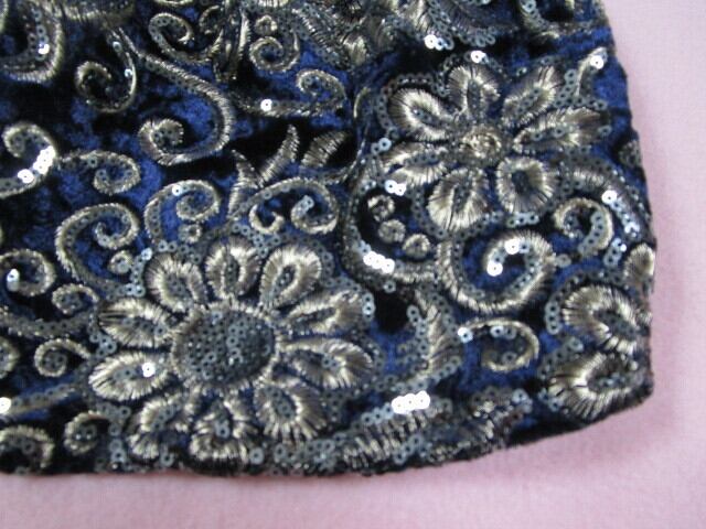 ベロア生地にゴールドのフラワー刺繍とスパンコール