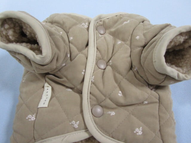 moncheri モンシェリ Mサイズ 胴回り40cm リバーシブル キルティング花柄 ボアアウター ブラウン 中古 定価7180円