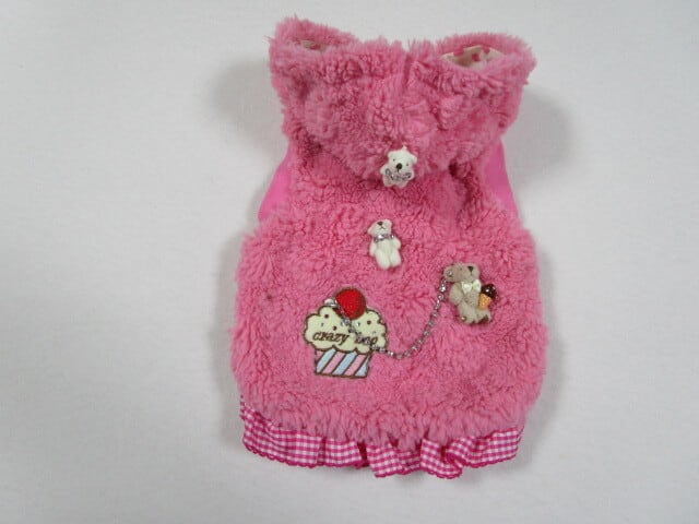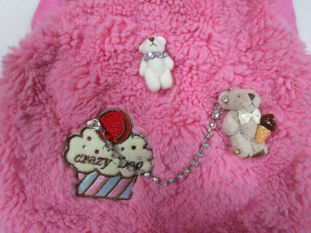 CRAZY BOO クレイジーブー Mサイズ 胴回り37㎝ カップケーキ&Bearチャーム ファーパーカー ピンク 中古