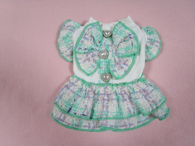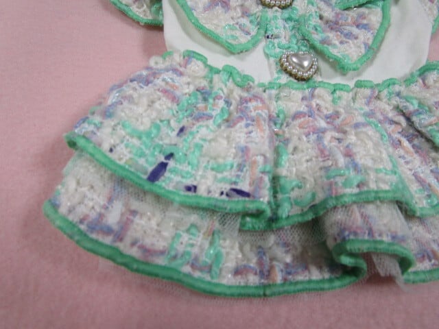 ene☆ 0号 胴回り27㎝ ツイードBIGリボンワンピース ミント 中古 定価5500円
