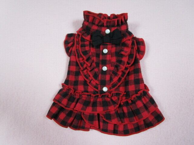 ene☆ 0号 胴回り29㎝ Blockチェックワンピース レッド 中古 定価4180円