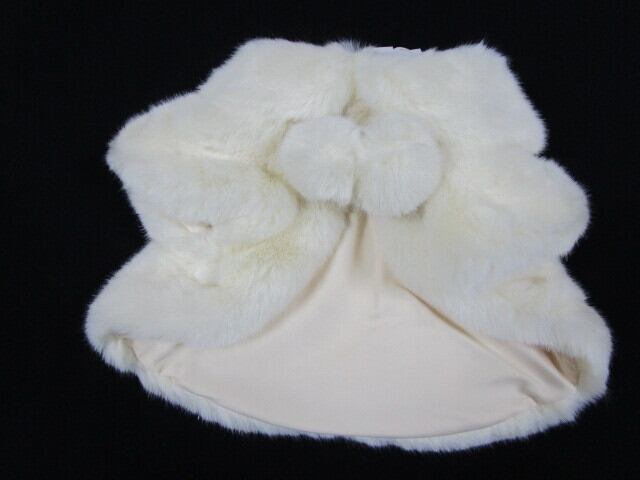 ■ふんわりとな滑らかな肌触りのファー生地、胸元にポンポン飾り。