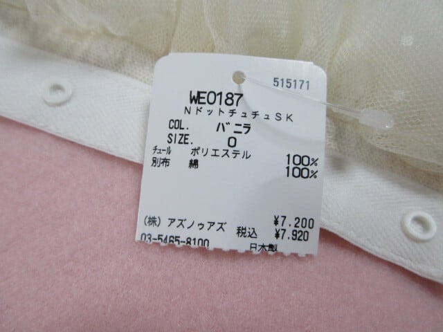 素材:【チュール】ポリエステル 100%【別布】 綿 100%