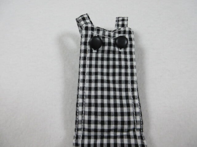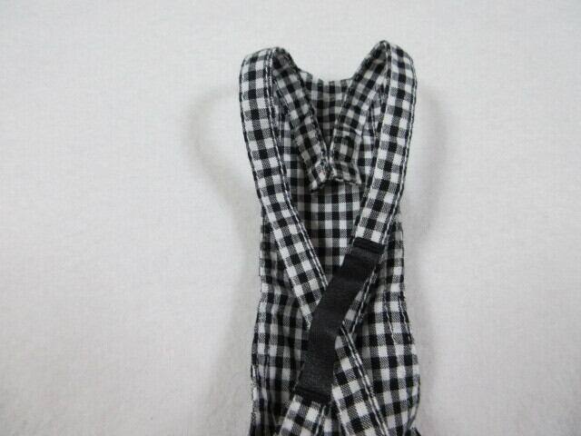 肩ひもは2段階調整、ウエストは前裾に少しゴム入り