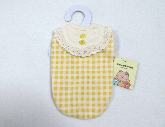 RUANDDAM Sサイズ 胴回り30㎝ コージーチェックスリーブレス イエロー タグ付新品 定価3480円