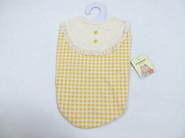 RUANDDAM XLサイズ 胴回り46㎝ コージーチェックスリーブレス イエロー タグ付新品 定価3480円