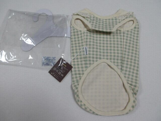 RUANDDAM XLサイズ 胴回り46㎝ コージーチェックスリーブレス グリーン タグ付新品 定価3480円